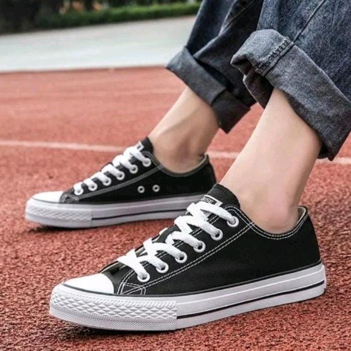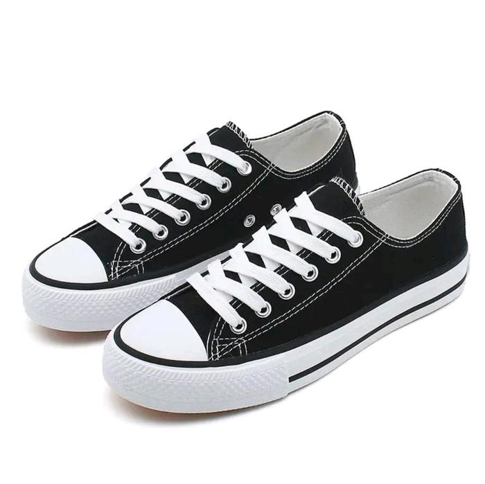 SEPATU SNEAKER COWOK CEWEK TERBARU CASUAL HITAM WANITA SHOES KASUAL - HITAM, 36