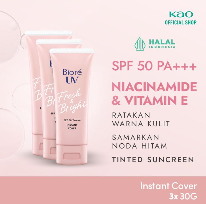 Biore UV Fresh & Bright Instant Cover Sunscreen SPF50 PA+++ 30gr Triplepack