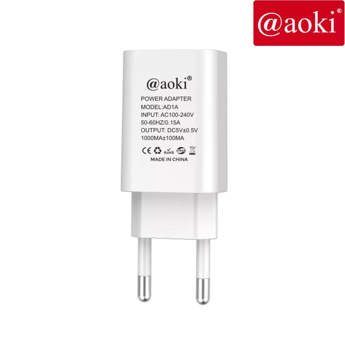 GRATIS ONGKIR ! AOKI ADAPTOR KEPALA TRAVEL CHARGER 5V/1A USB PORT CHARGING ANDROID STAINLESS WHITE ADAPTER - 5V1A ORI