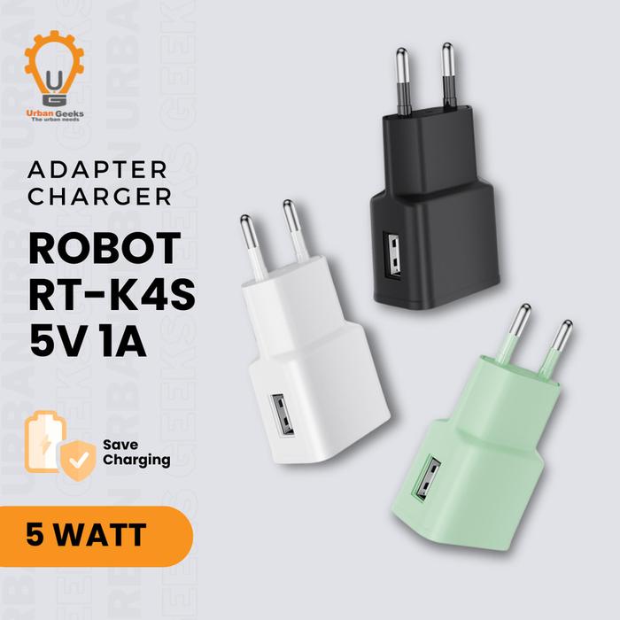 GRATIS ONGKIR ! ADAPTOR CHARGER 5V 1A ROBOT RT-K4 ADAPTER KEPALA SABBAT KZ TWS - PUTIH, ADAPTER ORI