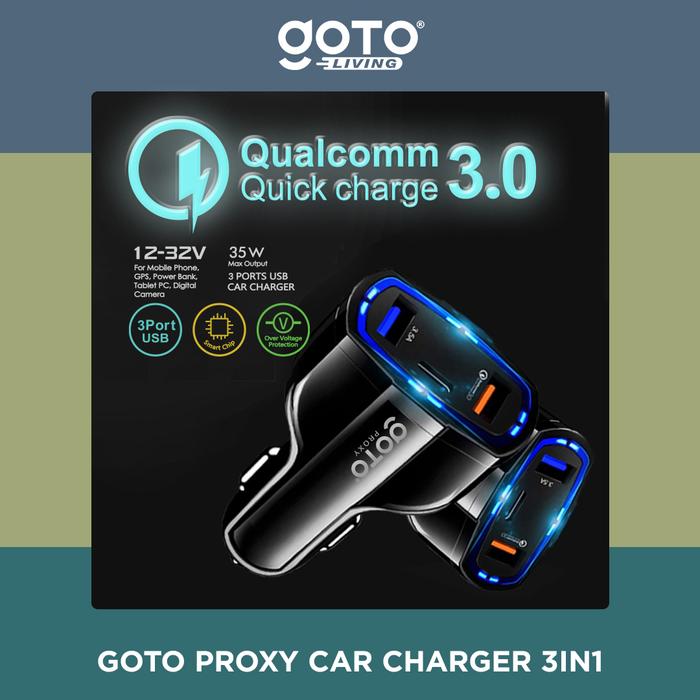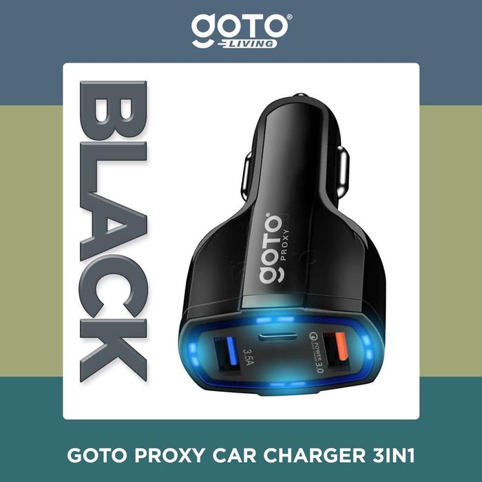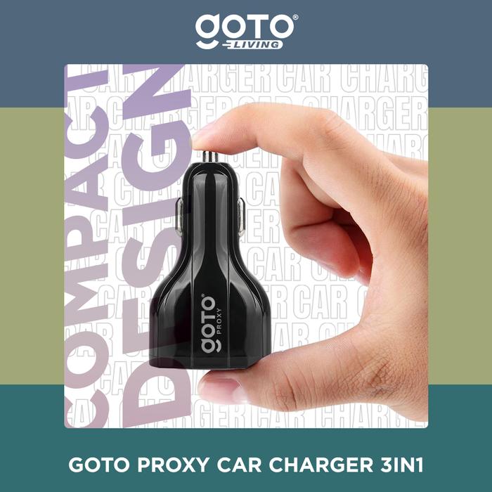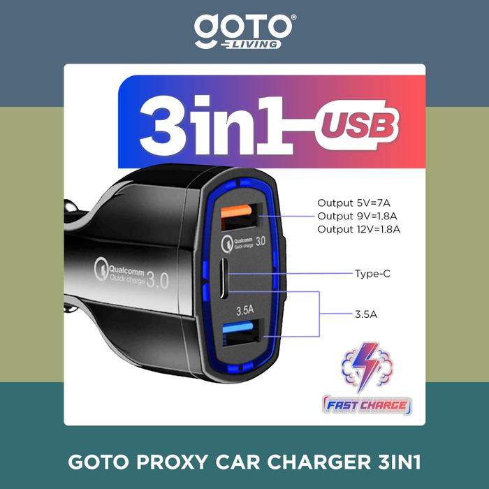 GRATIS ONGKIR ! GOTO [] PROXY ADAPTOR CHARGER MOBIL FAST CHARGING 3 IN 1 USB TYPE C - BLACK ORI