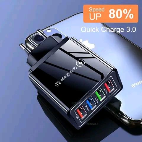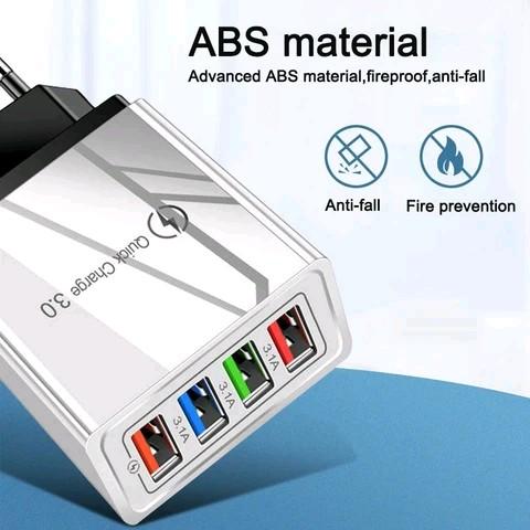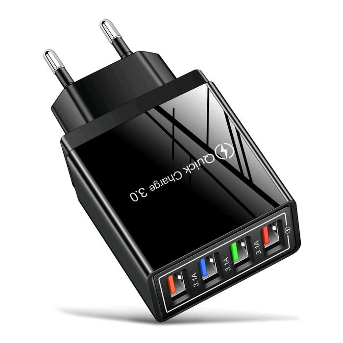 GRATIS ONGKIR ! ADAPTOR CHARGER 4 PORT USB 5V 3.1A BATOK FAST CHARGING - COLOKAN, ADAPTER PENGISI - HITAM ORI