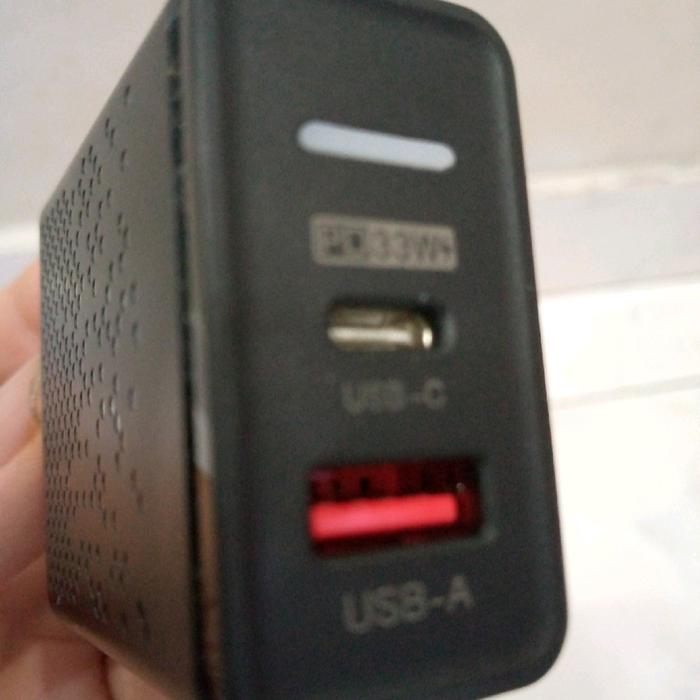 GRATIS ONGKIR ! ADAPTOR CHARGER 65W DUAL PORT USB A DAN TIPE C NON FAST - HITAM ORI