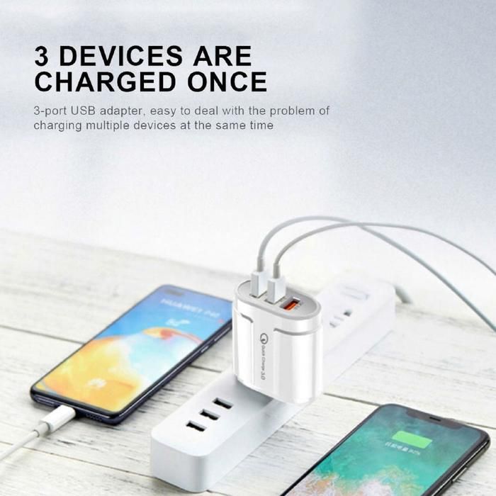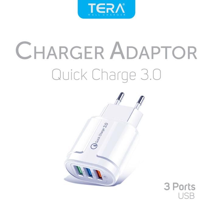 GRATIS ONGKIR ! TERA QUICK CHARGE QC 3.0 CHARGER ADAPTOR - 3 PORTS USB - WHITE ORI