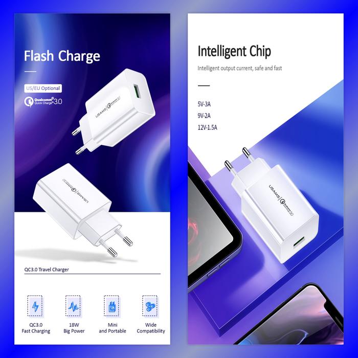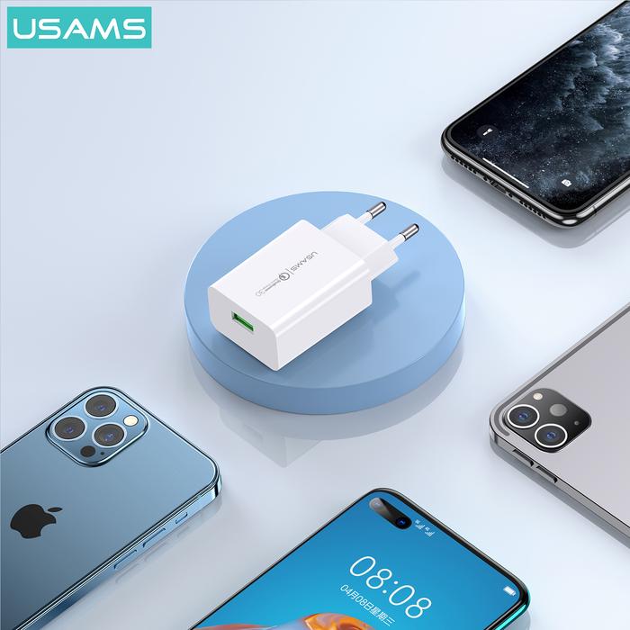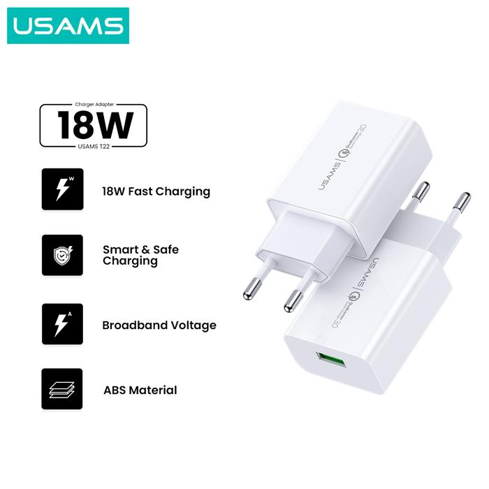 GRATIS ONGKIR ! USAMS T22 ADAPTER CHARGER FAST CHARGE 18W QC3.0 - PUTIH ORI