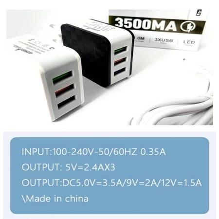GRATIS ONGKIR ! [FT] 18 ADAPTOR 3 PORT 3500 MAH FAST CHARGING ORIGINAL 2.4 A - HITAM ORI