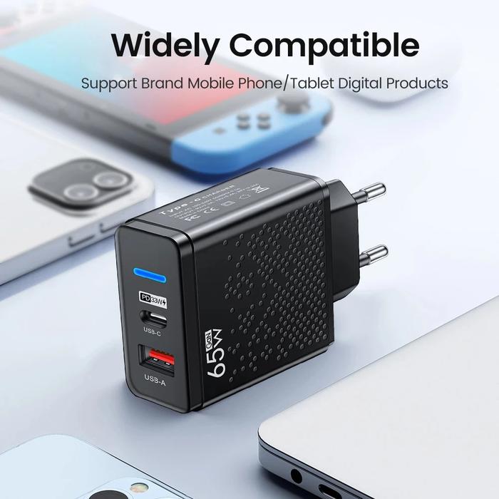 GRATIS ONGKIR ! AUBESS KEPALA CHARGER TYPE C DAN TYPE A QUICK CHARGE FAST CHARGER DUAL PORT UNIVERSAL 65W - GAN001 ORI