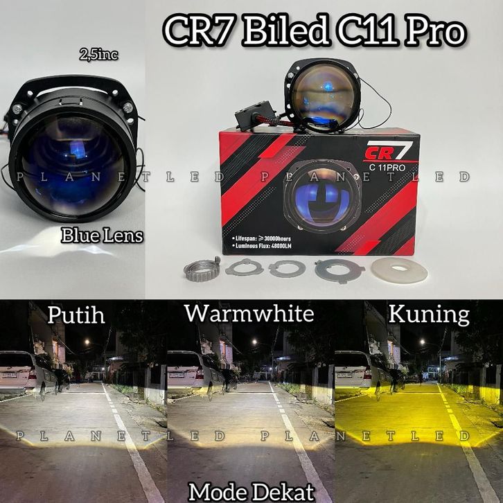 Lampu Biled 2,5inc CR7 C11 Pro Blue Lens 3 Warna Tembak Sudah Di Lengkapi Dengan Kipas Pendingin