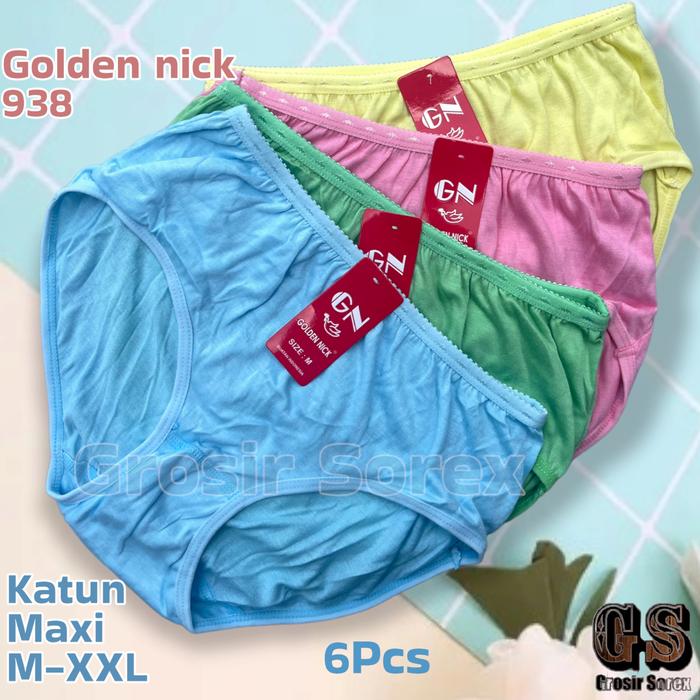 Celana Dalam Wanita Golden Nick 938 Bahan Katun Premium Quality Cutting Maxi Nyaman Lembut Motif