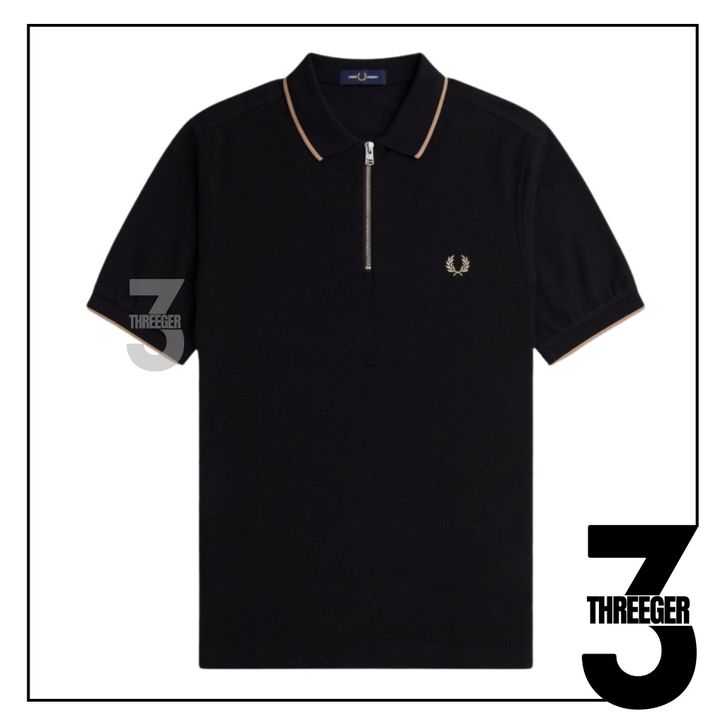 Fred Perry gld Tipped Crepe Pique Zip Neck Polo Black Original / Polo Fred Perry Original