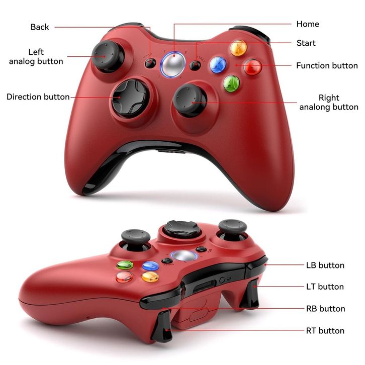 Xbox 360 Wireless For Xbox 360/Slim/Elite/Winodow/Pc Video Game 6-Axis Dual Vibration 2.4G Gaming