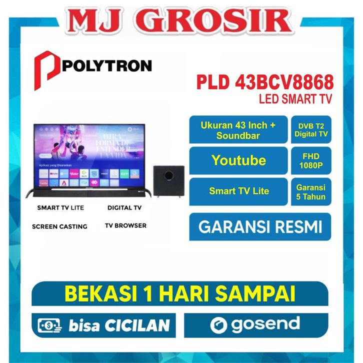 LED TV POLYTRON 43" 43BG9058 43 INCH 43BAG9953 USB MOVIE ANDROID SOUNDBAR new