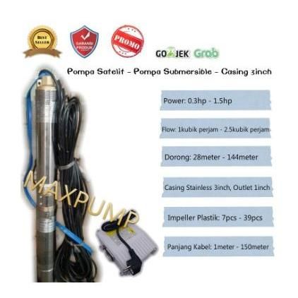 MAXPUMP 4SDM3/10+Kabel 50m POMPA SATELIT SET SUBMERSIBLE PUMP CASING 4 INCH 1HP PLUS KABEL 50METER
