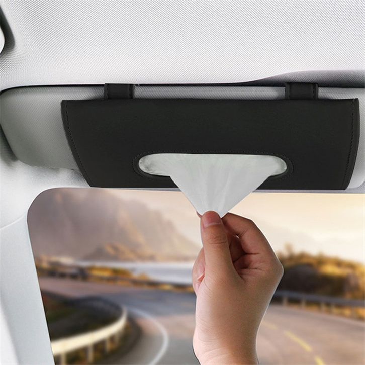 TERBARU 【Ready Stock】Tempat Tisu Mobil / Kotak Tissue Gantung Car Sun Visor Jepit PU Leather Wadah Tisu Mobil