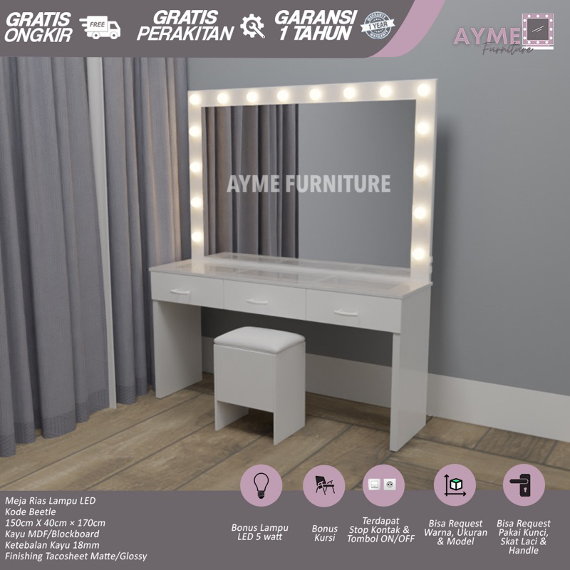 Meja Rias Makeup Lampu Double Beetle (JABODETABEK)