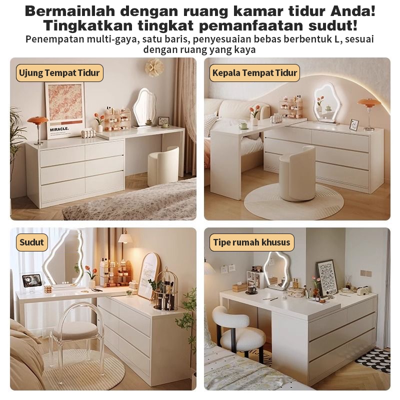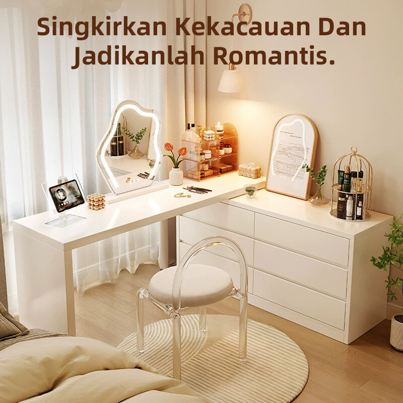 Meja Rias Aesthetic/Meja Rias Minimalis Modern/Meja Rias Laci/Meja Rias Lampu Led/Meja Kosmetik
