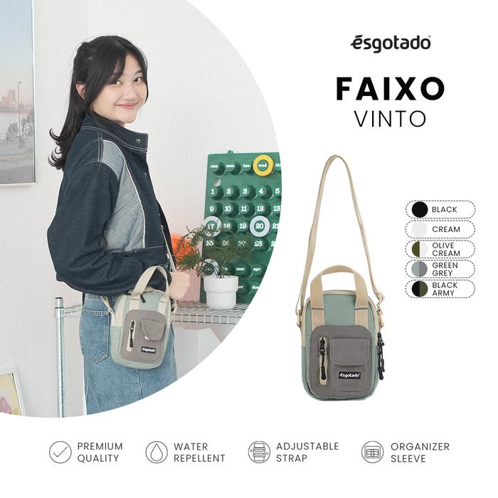 ESGOTADO TAS SELEMPANG WANITA PRIA KANVAS - FAIXO VINTO - SLING BAG WATER REPELLENT CANVAS SLINGBAG - BLACK ARMY