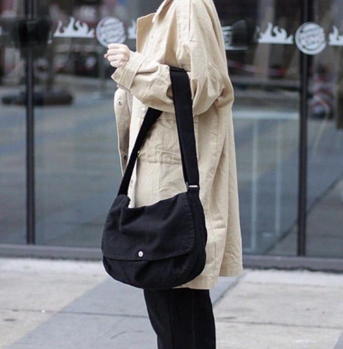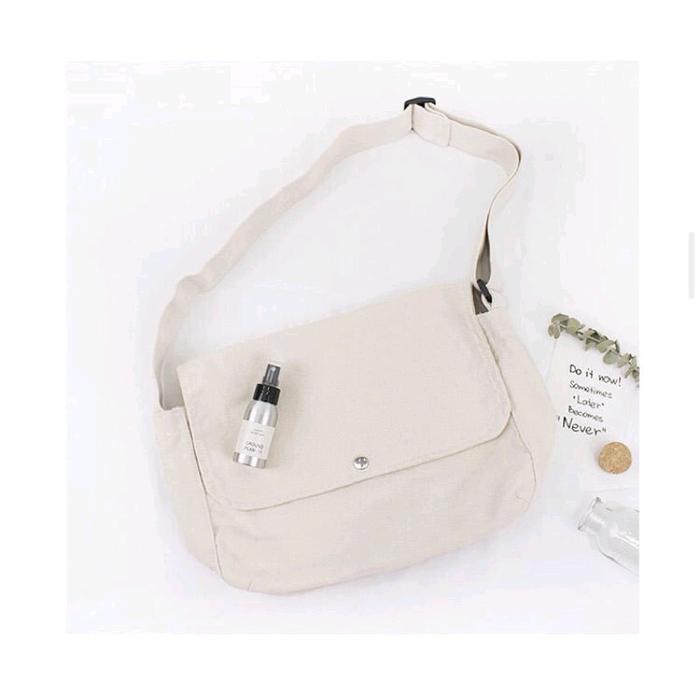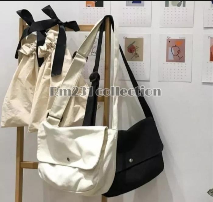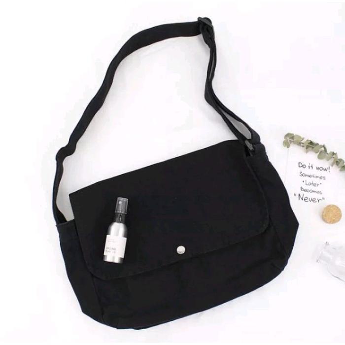 TAS SELEMPANG KANVAS MURAH UNISEX COCOK UNTUK PRIA DAN WANITA SLINGBAG CANVAS - HITAM CANVAS KANCING