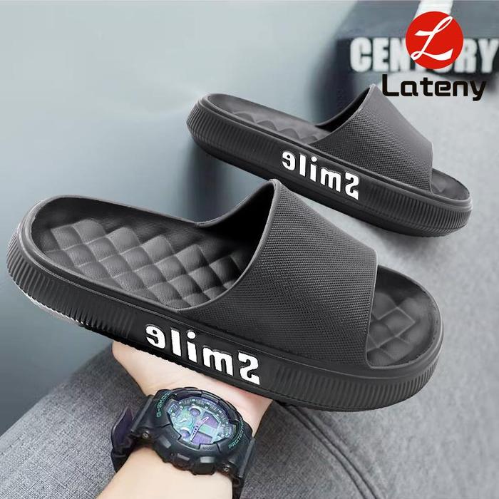 LATENY SANDAL PLATFORM SANDAL ORIGINAL/SMILE SANDAL ANTI SELIP UNTUK DIPAKAI DI LUAR RUMAH - HITAM-913, 39-40