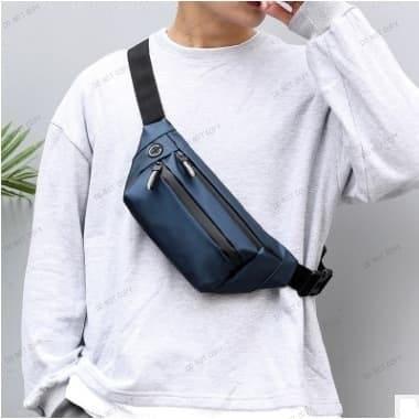 TAS SELEMPANG WATERPROOF PRIA WANITA WAISTBAG MULTIFUNGSI #12 - HITAM
