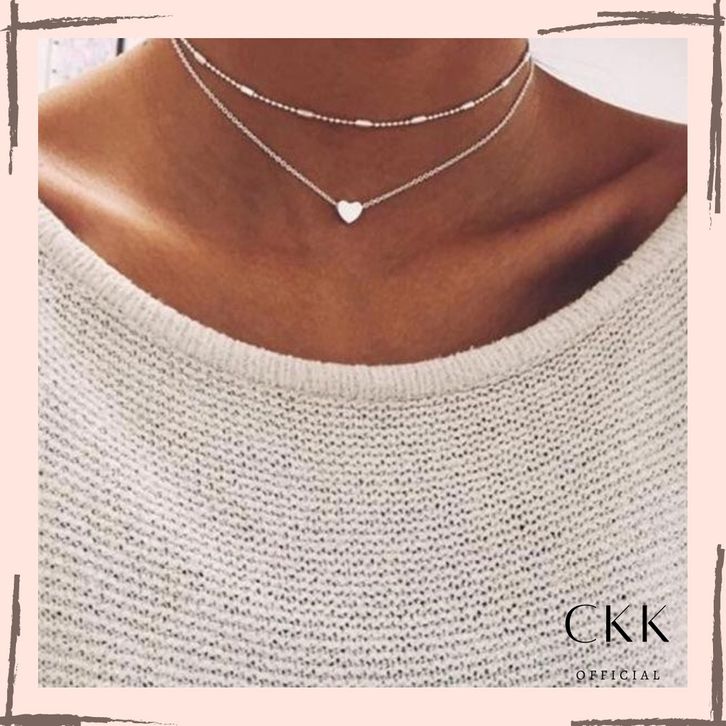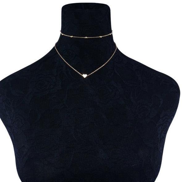 Perhiasan Aksesoris Wanita Kalung Rantai Hati Double Love Chain Necklaces 2 Layer Aksesoris Fashion