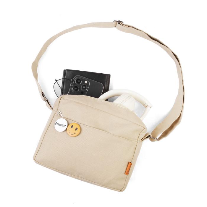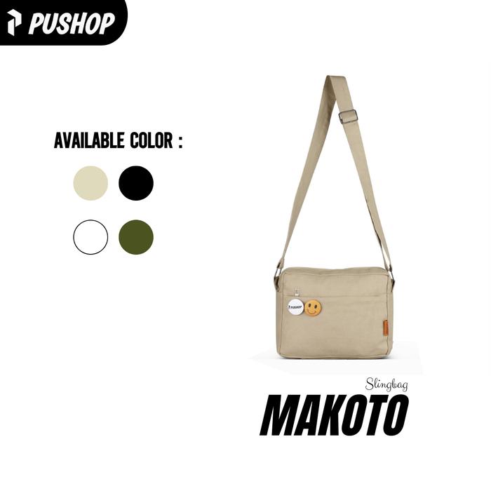(GRATIS PIN) PUSHOP TAS SELEMPANG PRIA WANITA MAKOTO - SLINGBAG UNISEKS SLING BAG KASUAL FREE 2 PIN BROS SLING BAG UNISEX BAHAN KANVAS POLOS - KREM