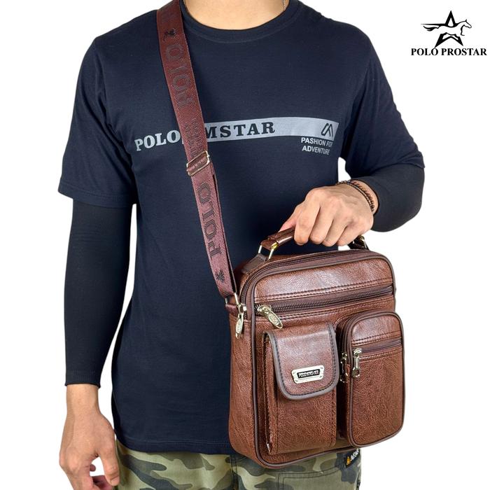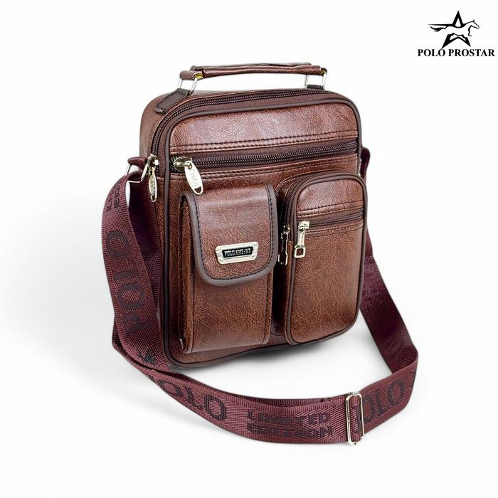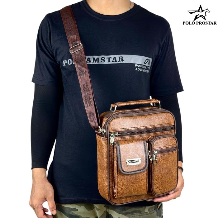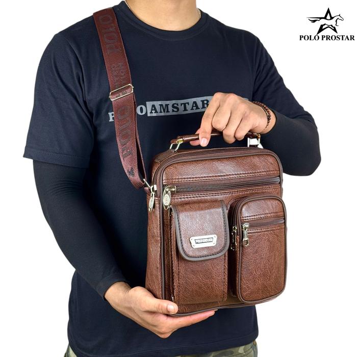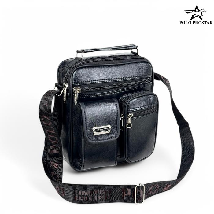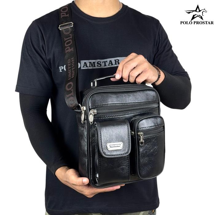 TAS SELEMPANG KULIT PU LEATHER POLO AMSTAR 10" INCHI TAS KANTOR PRIA - HITAM