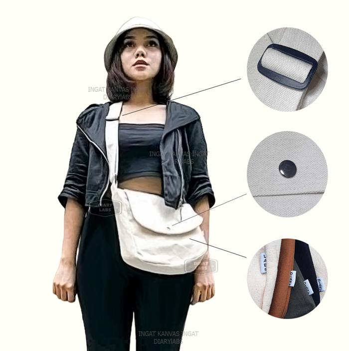 DIARYLABS - SLINGBAG SELEMPANG KANVAS SIMPLE PRIA WANITA UNISEX HITAM CANVAS CANVAS BAG - SLINGBAG ARMY, 22CM X 30CM