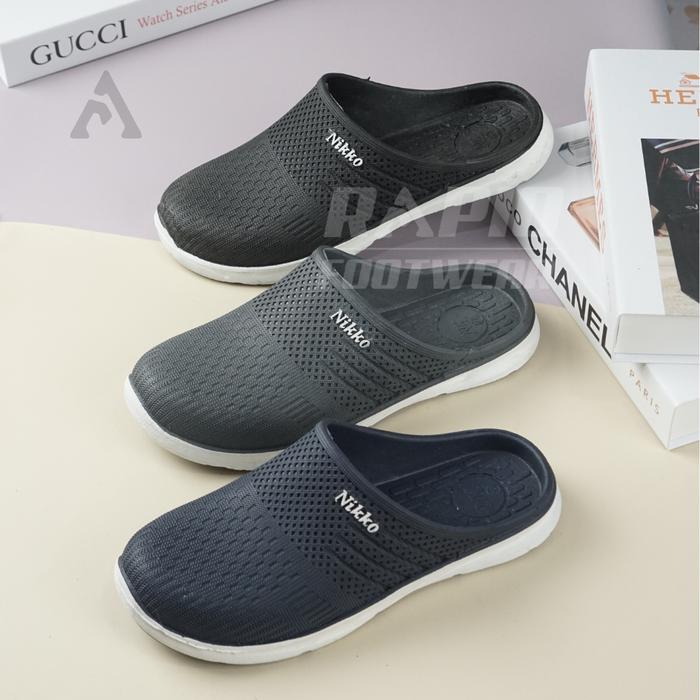 SANDAL SELOP KARET MODEL BAKPAO BAIM LENTUR SIZE 39-43 - HITAM/NAVY/GRAY - HITAM, 39