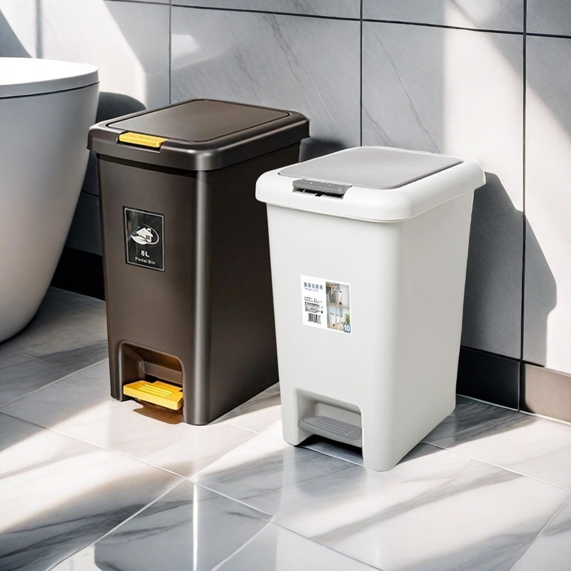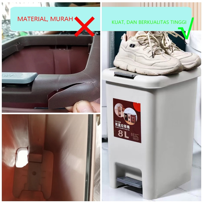 Tempat Sampah Injak 8L/10L/15L/20L Plastik Tertutup Kotak Sampah dapur Kamar mandi Kamar Tidur Ruang Tamu Trash Box Peda