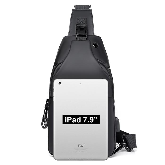WEIXIER X304 TAS SELEMPANG BAHU USB CHARGING PRIA HITAM - BLACK