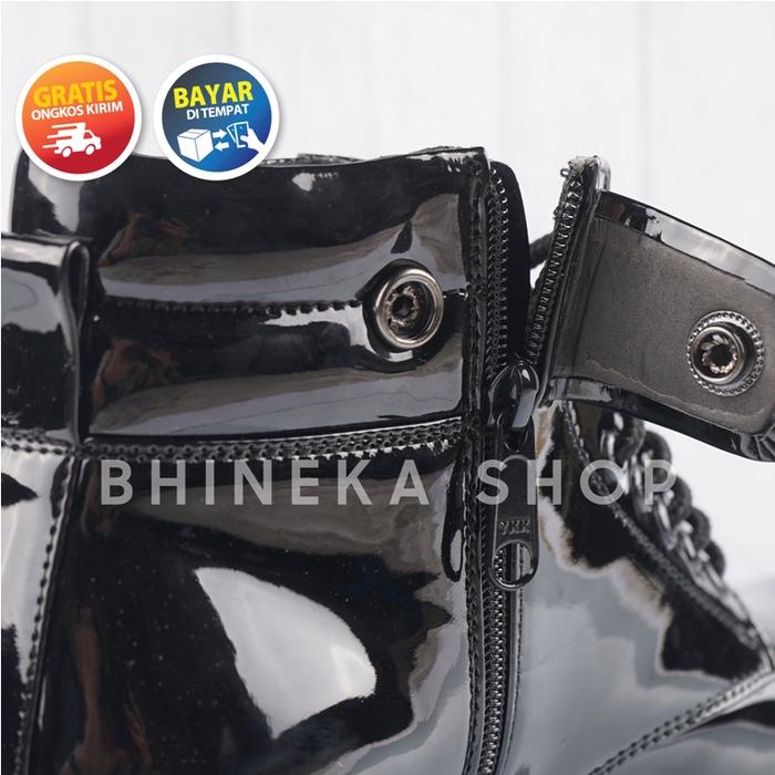 SEPATU KILAP PDH PDL POLISI POLRI TNI SECURITY SATPAM DINAS KERJA HITAM KARET BOOTS SYNTHETIC FORMAL - HITAM KILAP, 37