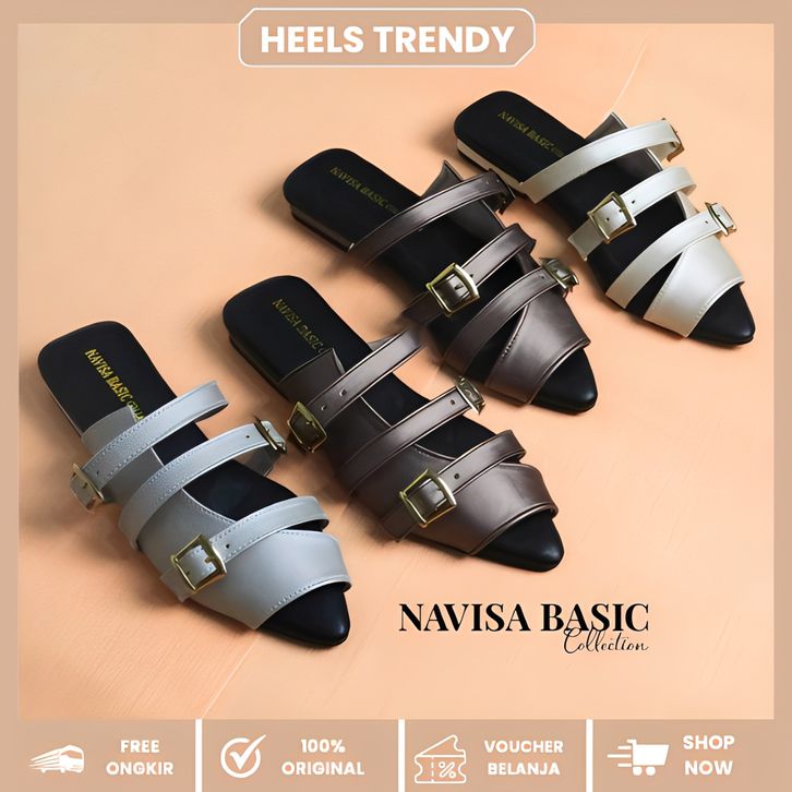 Sepatu Flatshoes Wanita Kekinian Hak Mules 2 Cm Gesper Super Empuk Navisa Basic collection