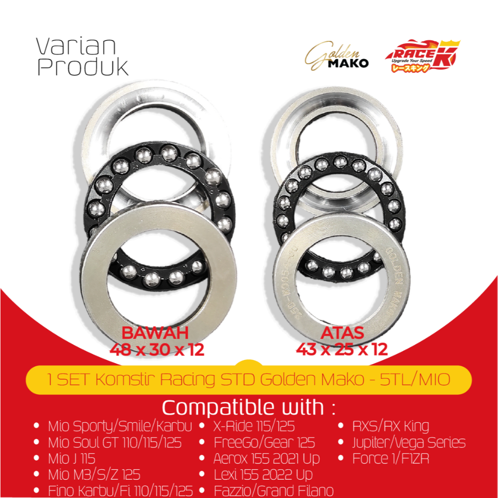 Golden Mako Komstir Racing Standar Honda PCX ADV Vario Stylo 125 150 160 LED BeAT Genio Scoopy Spacy 110