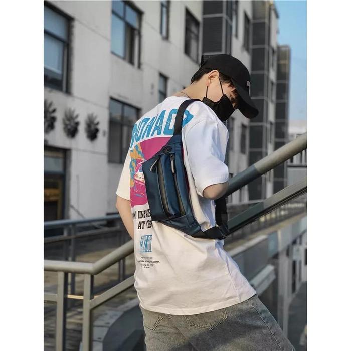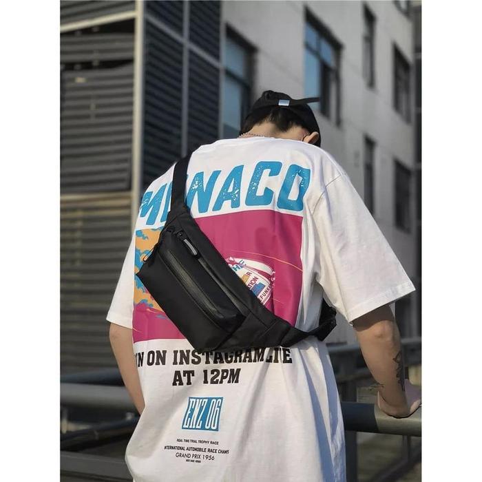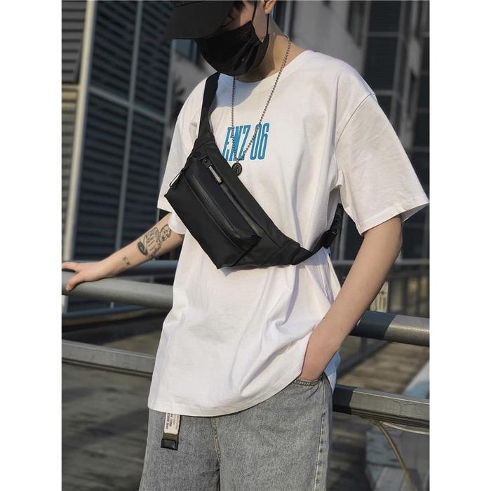 TAS SELEMPANG PRIA BAHAN WATERPROOF WAISTBAG SLINGBAG TAS PRIA Y01 - HITAM