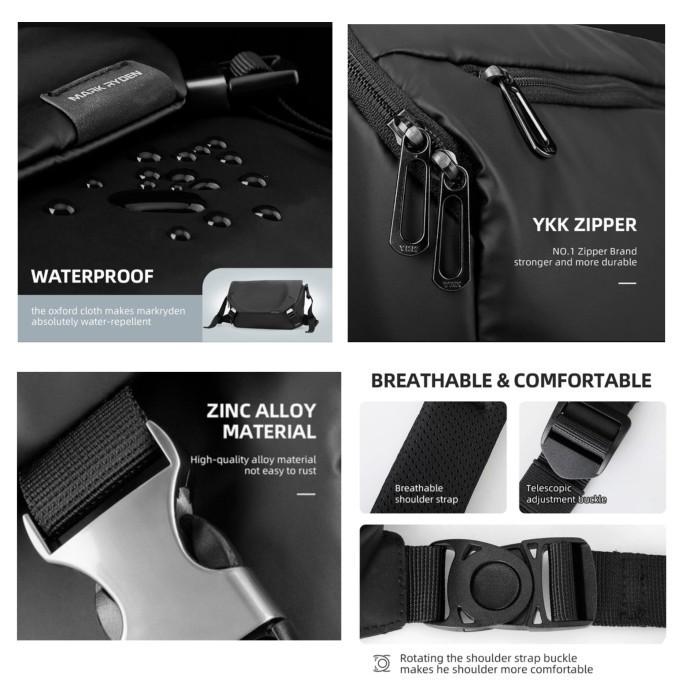 MR8109 TAS SELEMPANG MARK RYDEN SLING BAG PRIA COWOK IPAD 9.7 10.5 ANTI AIR WATERPROOF RINGAN