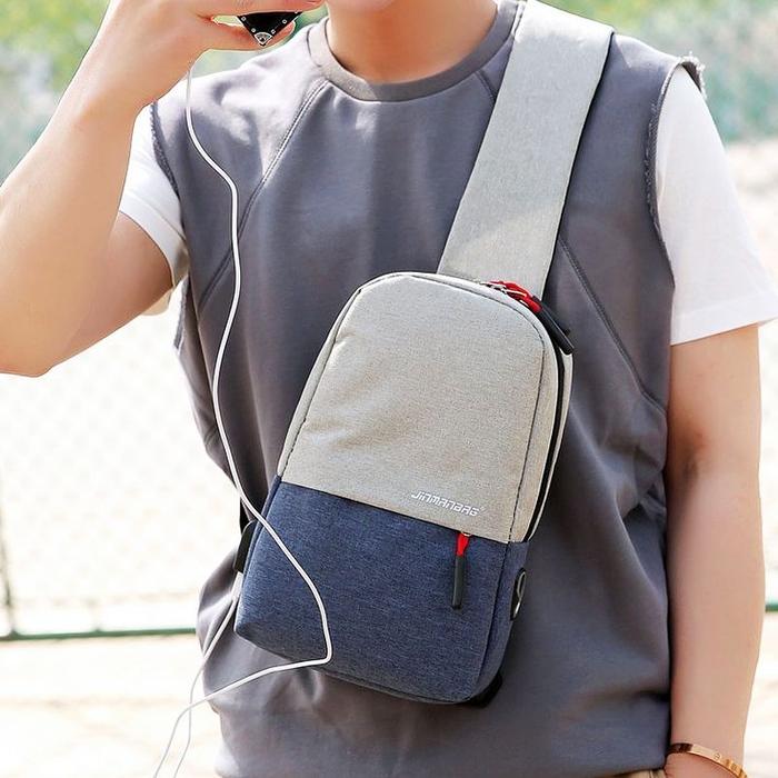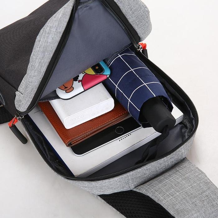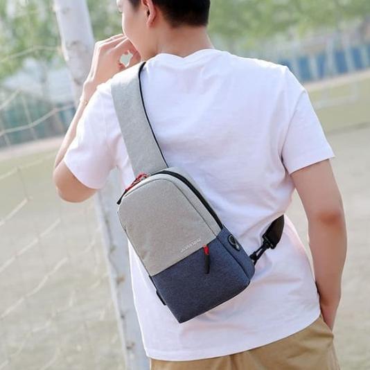 FREEKNIGHT TAS SELEMPANG PRIA FASHION USB CHARGER TS501 - ABU HITAM