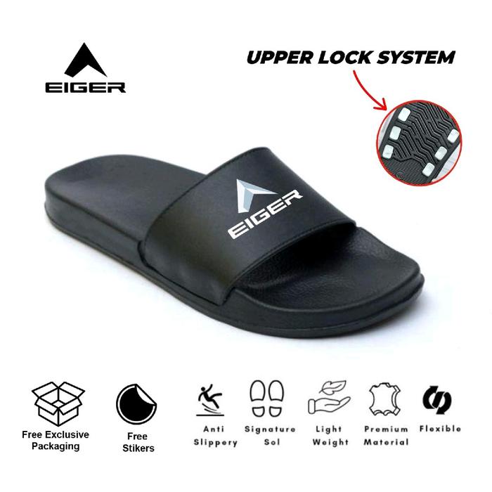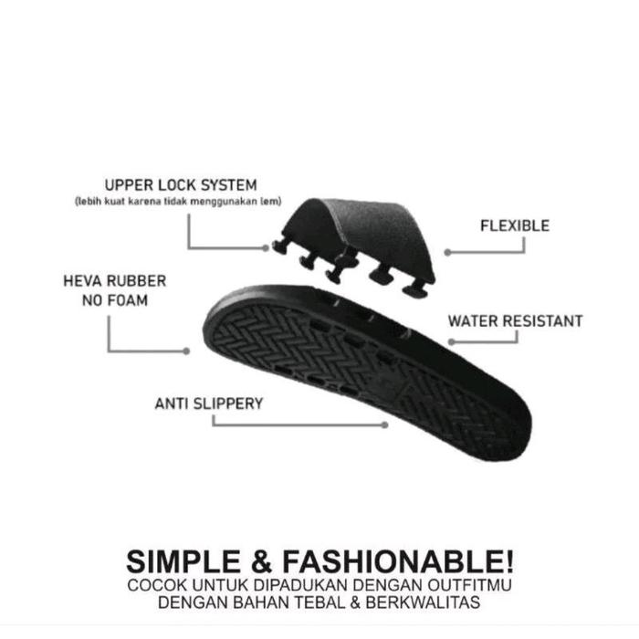 SANDAL SLOP PRIA WANITA EVA/SANDAL SLIDE SLOP UPPER LOKE SISTEM/SANDAL DISTRO ORIGINAL SIZE 36_43 SENDAL KARET EVA - HITAM + BOX, 36
