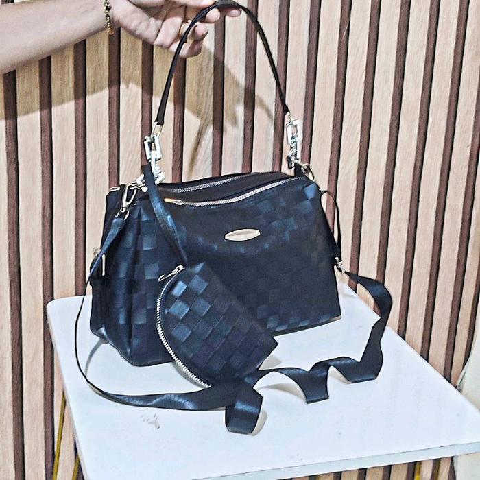 TAS SELEMPAANG WANITA TATUN GESPER FREE POUCH KASUAL TERBARU - HITAM