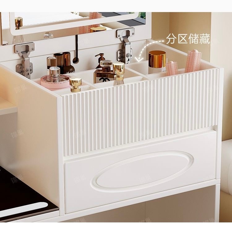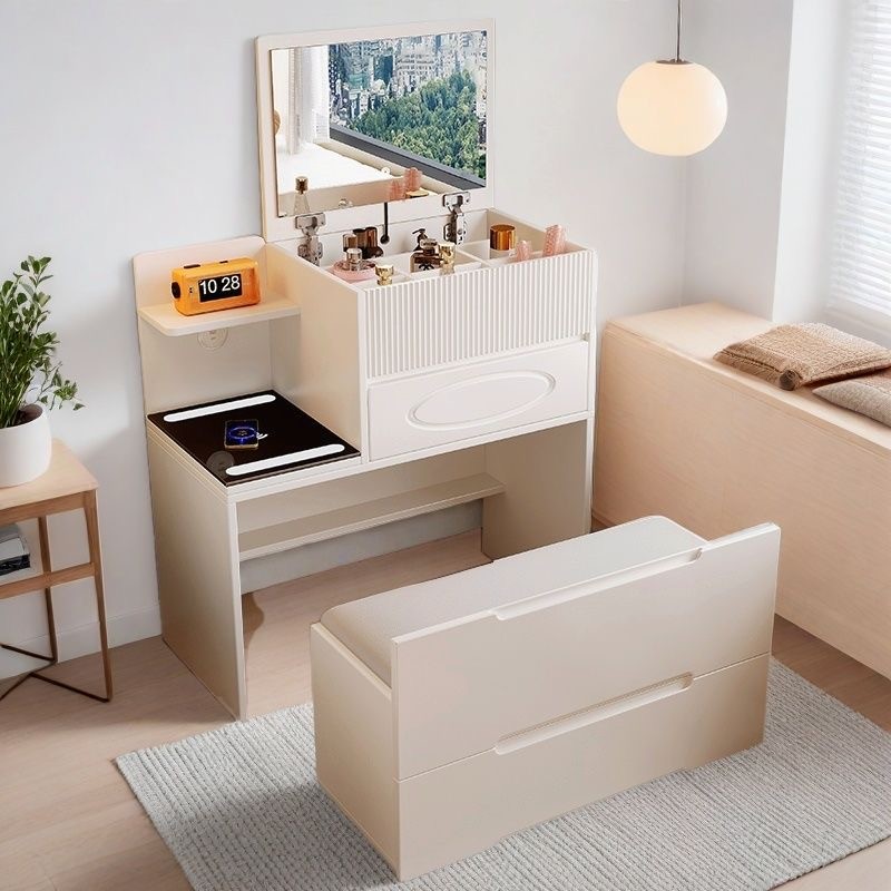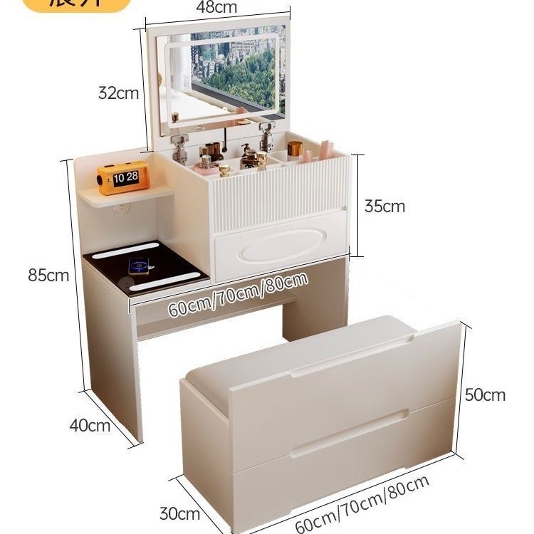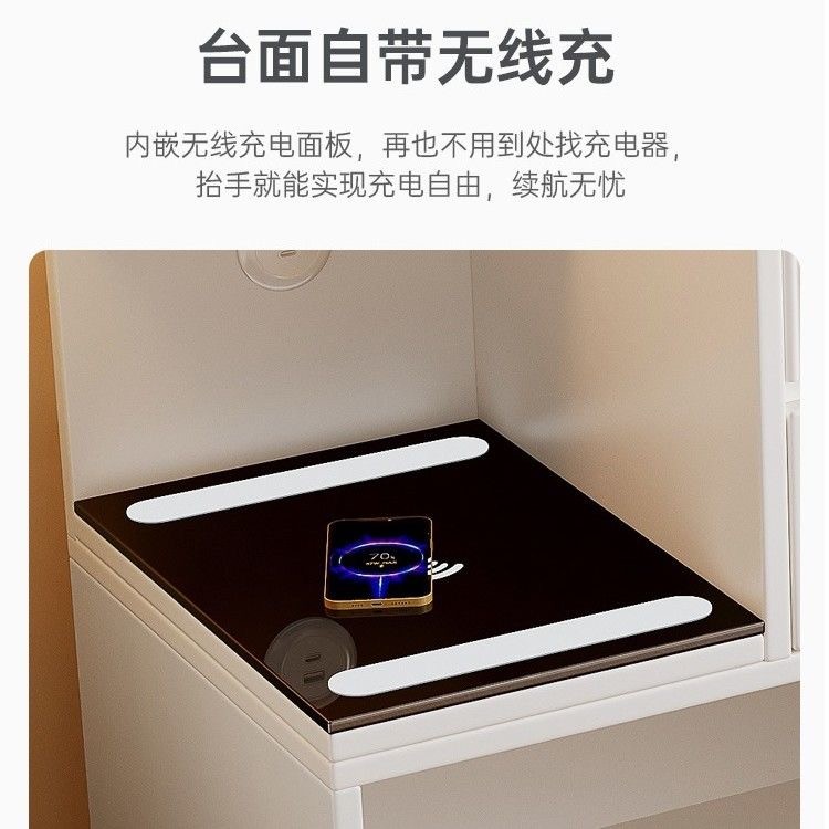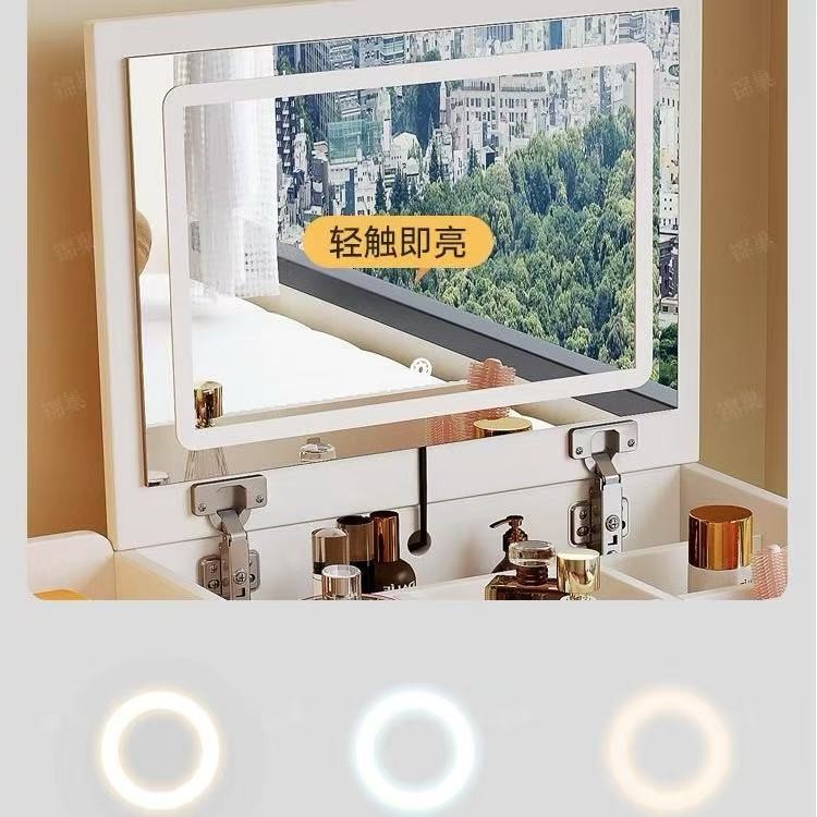 ☕2In1☕Meja Rias Lipat 3Warna LED Cermin Dan Smart Meja Nakas Wireless Charging Cahaya Aesthetics Minimalis Susun Lemari