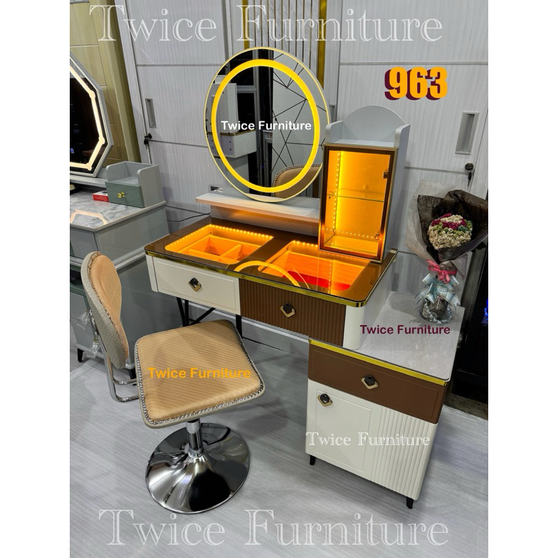 Meja Rias LED Modern Minimalis Import Limited Edition Khusus Kargo Luar Kota / Pulau + Packing Kayu