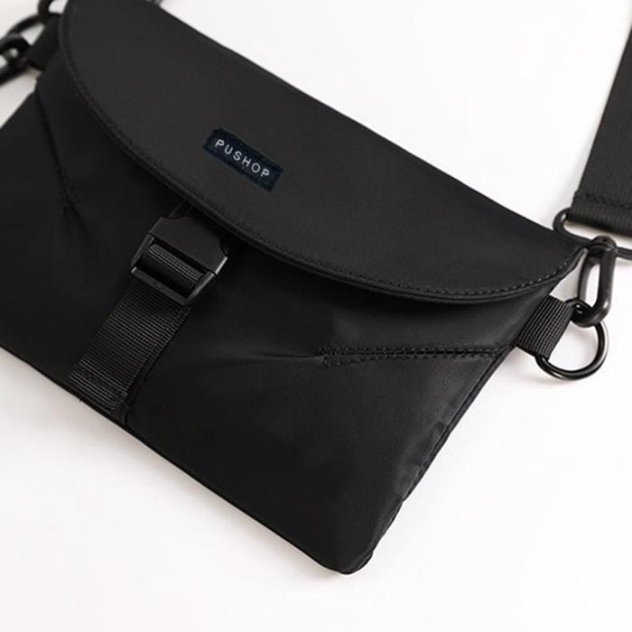 PUSHOP TAS SELEMPANG PRIA WANITA CROSS - SLINGBAG UNISEKS SLING BAG 2 IN 1 KASUAL WATERPROOF - HITAM