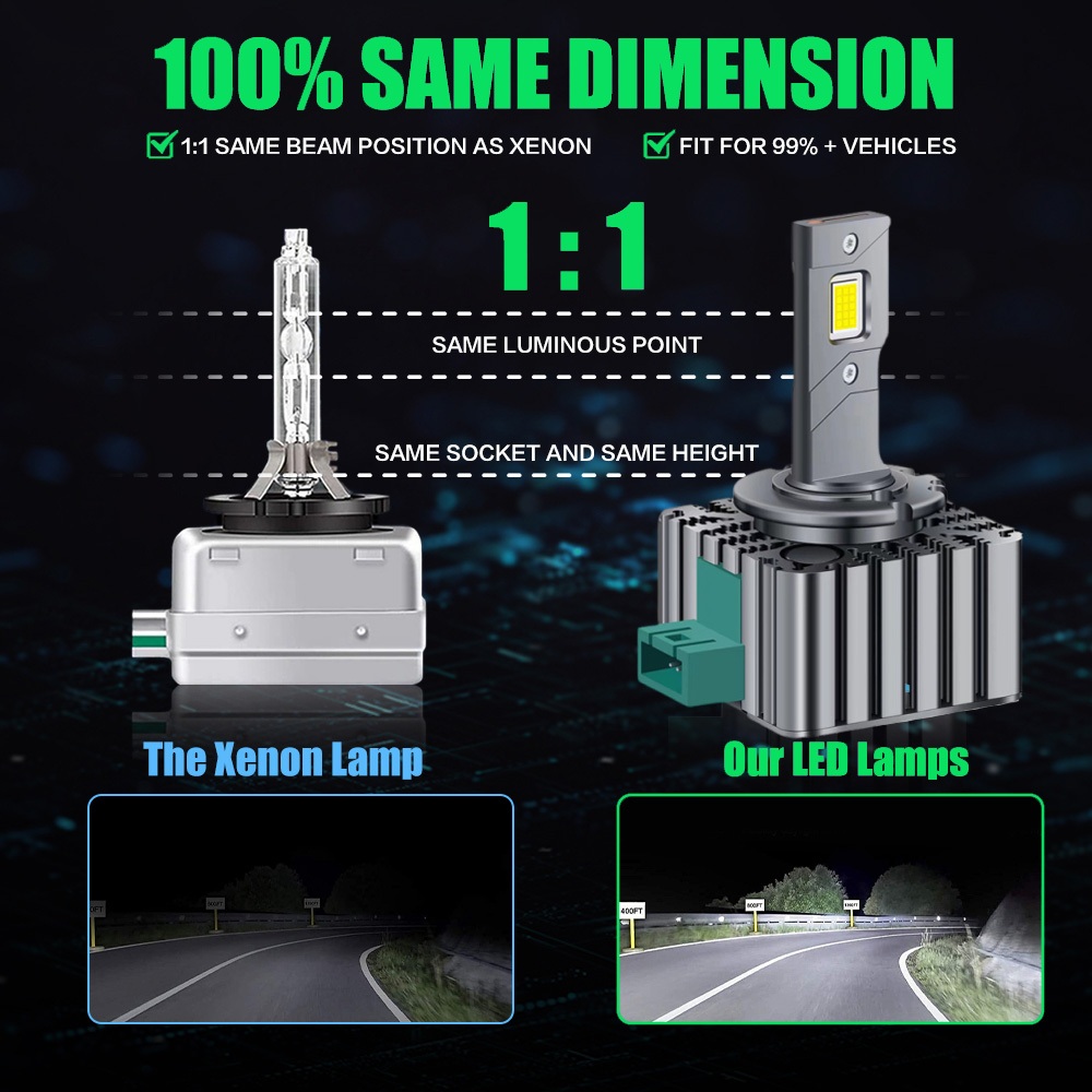 LumiKnight 2x Bohlam Lampu Depan LED D series 110W 26000LM 6500K depan warna putih D1S D2S D3S D4S