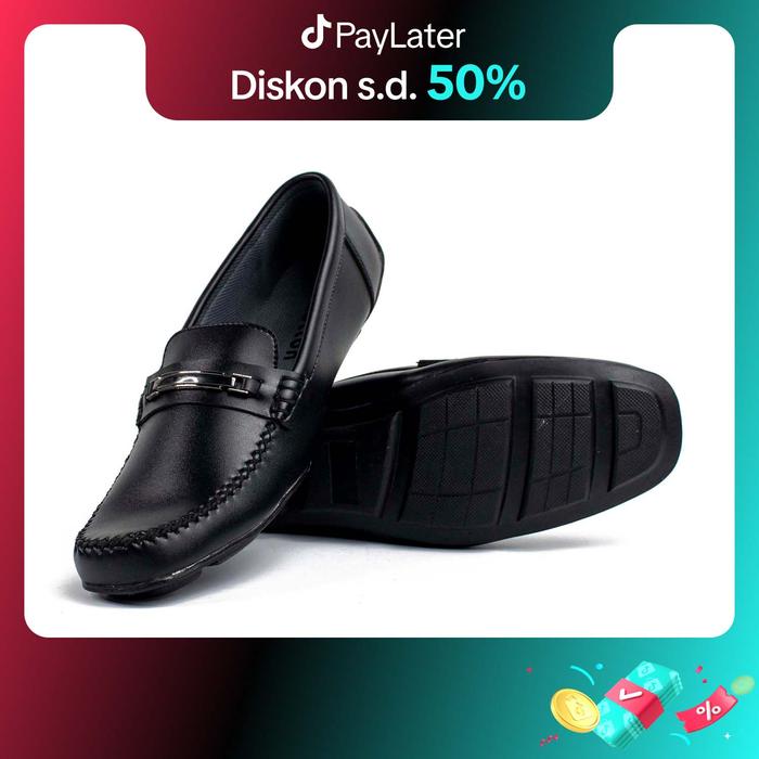 SEPATU MOCCASIN PRIA LUTTON A1 SLIP ON KULIT SINTETIS – HITAM COKELAT NYAMAN ELEGAN SHOES - HITAM, 39