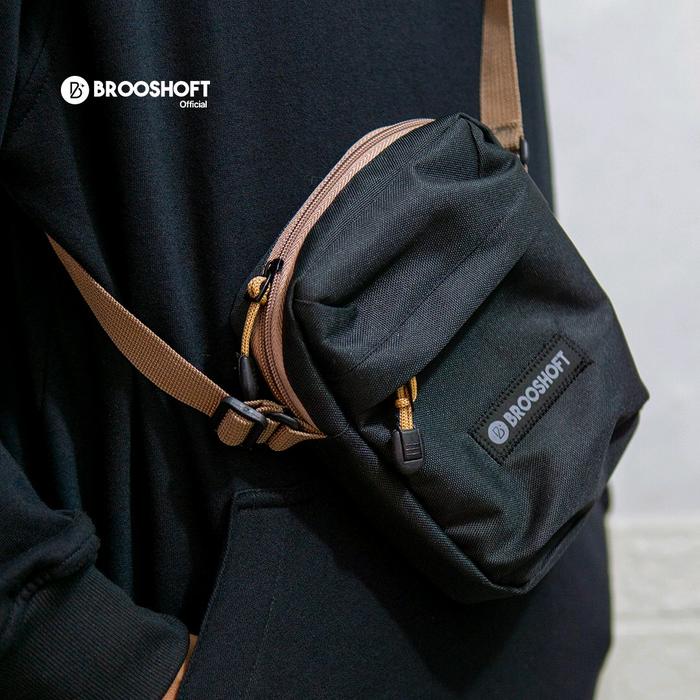 TAS SELEMPANG PRIA SLIGBAG BROOSHOFT LEXO-02 UNISEX SLINGBAG COWOK - BLACK ×MOCA