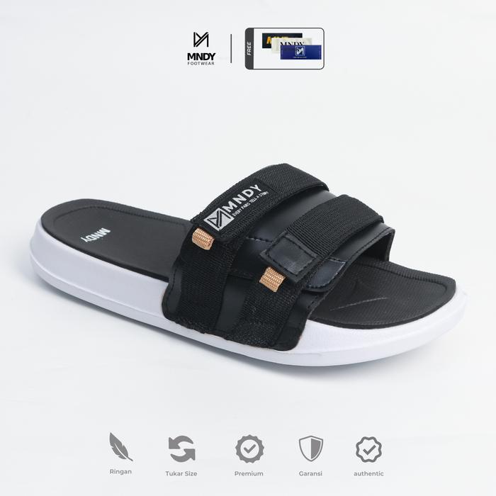 MNDY OFFICIAL - PERVEZ BLACK - SANDAL SLIDE KARET PRIA SENDAL ANTI SLIP - 39