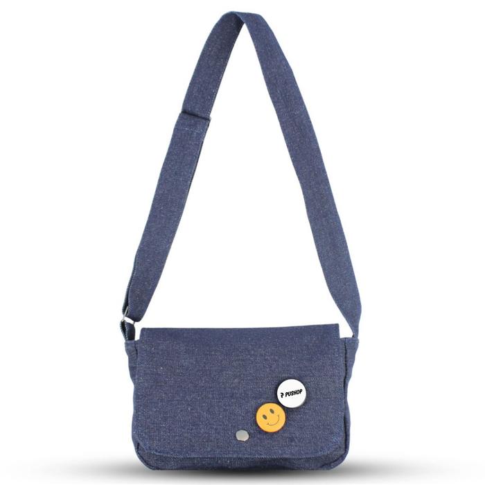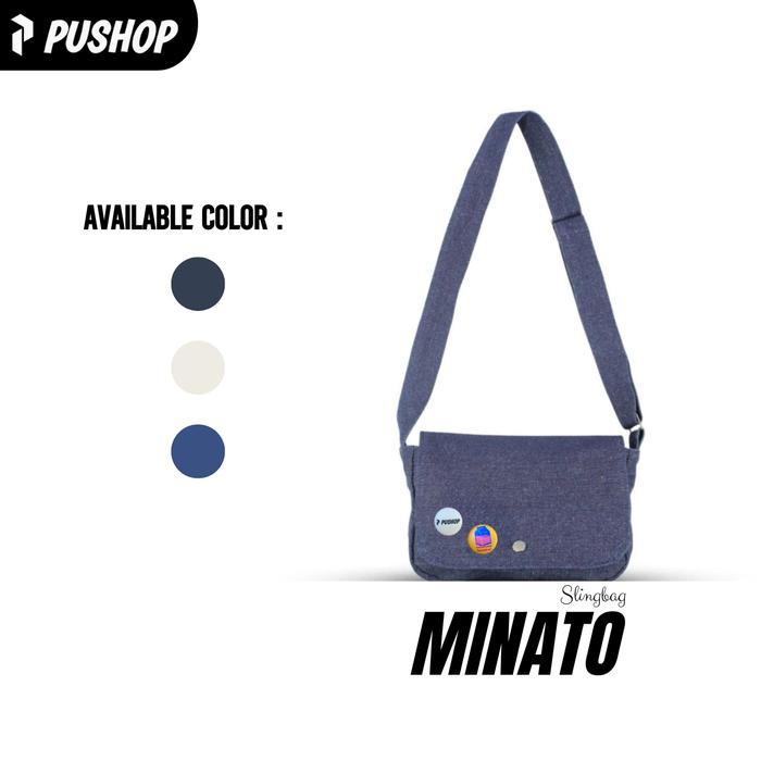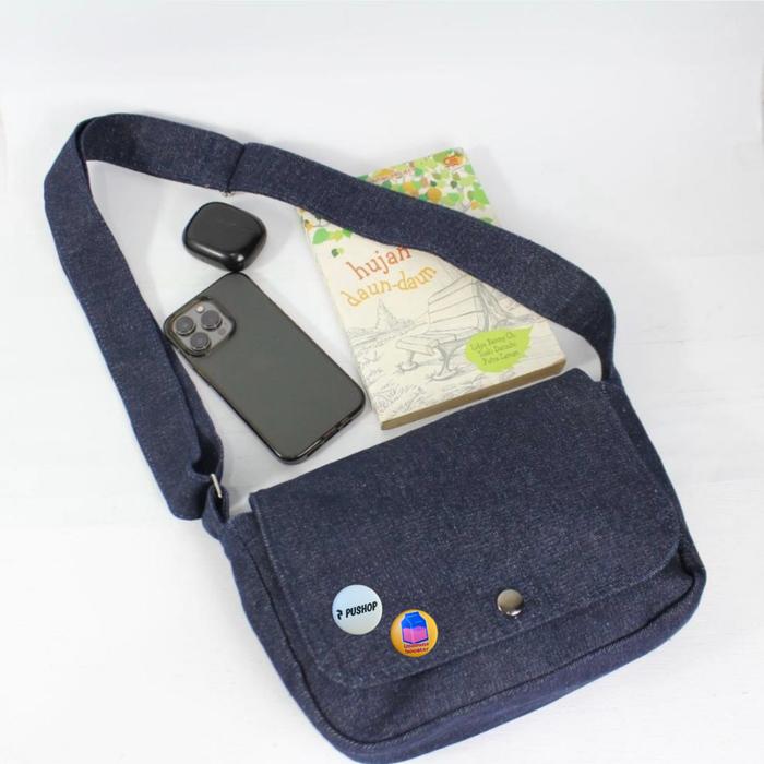 (GRATIS PIN) PUSHOP TAS SELEMPANG PRIA WANITA DENIM MINATO - SLINGBAG POLOS UNISEKS FREE 2 PIN BROS SLING BAG BAHAN DENIM KASUAL COWO - BLACK DENIM