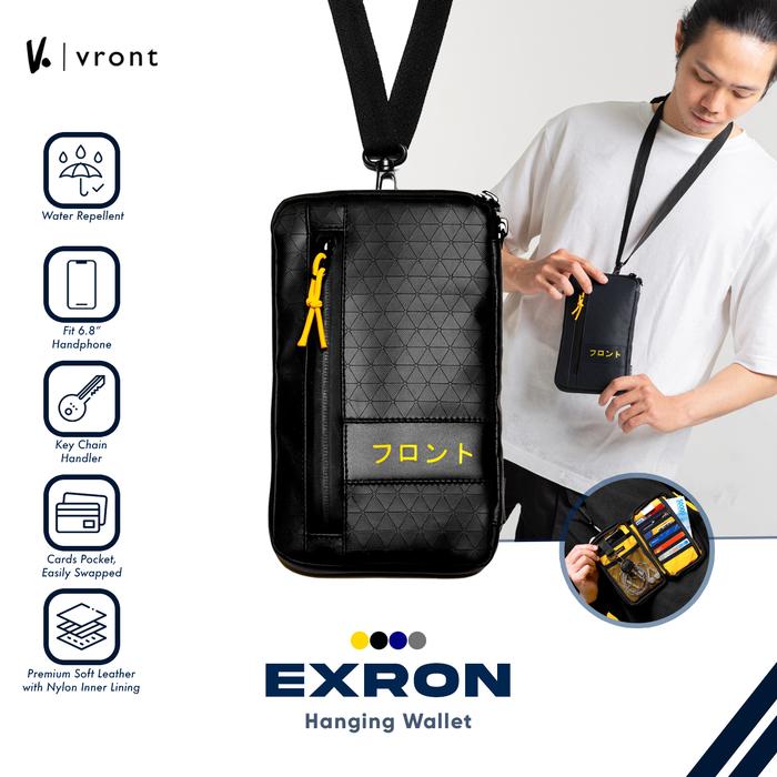 VRONT EXRON HANGING WALLET LEATHER TAS LEHER GANTUNG WATERPROOF CARD HOLDER PHONE WALLET SELEMPANG DOMPET HP DAN UANG PRIA - NAVY, NON-BOX