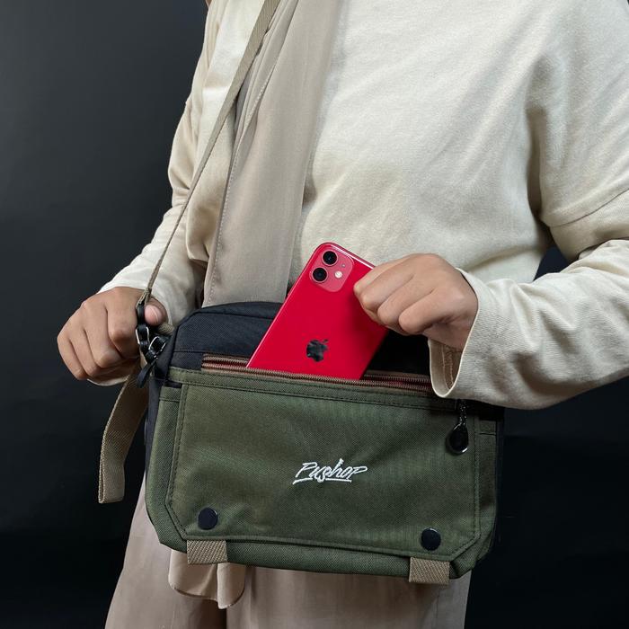 PUSHOP AUTHENTIC - TAS SELEMPANG PRIA PUSHOP RAZO - HITAM-HIJAU