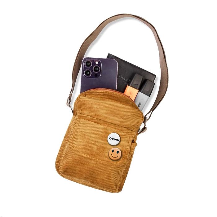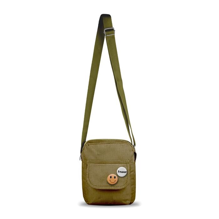 (GRATIS PIN) PUSHOP TAS SELEMPANG CORDUROY PRIA WANITA NOUYA - SLINGBAG CORDUROY UNISEKS FREE 2 PIN BROS SLING BAG POLOS CASUAL TERBARU COWOK - ABU